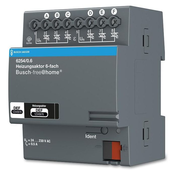 Busch-Jaeger 2CKA006220A0025, Accionador termostático, 6 canales, IP20, Azul, Gris, Busch-free@home, RoHS, CE