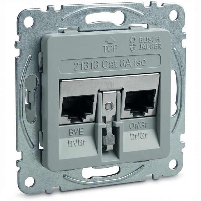 Busch-Jaeger 0218/12-101, 2 x RJ-45, 6a, Metálico, ISO / IEC 11801: 2011-06, EN 60 603-7-51: 2011-01, DIN EN 55022, class B, 31 mm, 1 cm