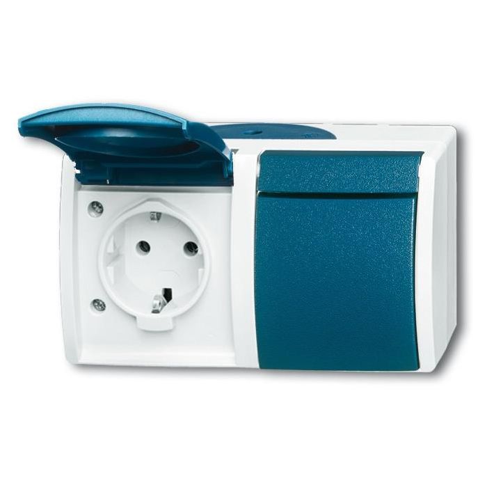 Busch-Jaeger 4011395993316, 2 x Type F, 2P+E, Azul, Blanco, IP44, 250 V, 16 A