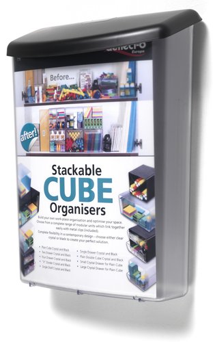 Buzón de sugerencias mural en formato DIN A4 vertical con color transparente y tapa negra. Resistente a golpes y a la intemperie. También, contiene inhibidores UV que ayudan a resistir la decoloración del documento. Medidas: 335 x 250 x 100 mm.
