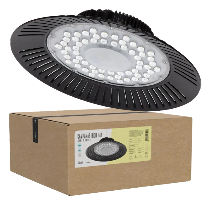 La Campana LED 200W BX3 LIGHT es una luminaria industrial de alto rendimiento diseñada para la iluminación eficiente de grandes superficies, proporcionando elevada potencia lumínica, máxima eficiencia energética y alta resistencia en entornos industriales exigentes.Especificaciones técnicas: Potencia nominal: 200W Flujo luminoso: 20.000 lúmenes Temperatura de color: 6000ºK (blanco frío) Grado de protección: IP65 (resistente al polvo y chorros de agua) Vida útil estimada: 50.000 horas Tecnología LED: Alta eficiencia Cuerpo: Aluminio con sistema de disipación térmica optimizado Características principales: Iluminación potente y homogénea para grandes áreas Alta resistencia a polvo, humedad y condiciones industriales Bajo consumo energético frente a campanas tradicionales Encendido instantáneo sin parpadeos Ideal para naves industriales, centros logísticos, almacenes, fábricas y pabellones deportivos Fabricada bajo los estándares de calidad de BX3 LIGHT, garantiza rendimiento estable, eficiencia energética y larga durabilidad en aplicaciones industriales y profesionales.