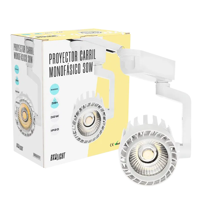 El Foco de Carril LED 30W “Faith” BX3 LIGHT Monofásico es una luminaria profesional diseñada para iluminación comercial y de acento, proporcionando un alto rendimiento lumínico y gran versatilidad en espacios expositivos.Especificaciones técnicas: Potencia nominal: 30W Flujo luminoso: 2.600 lúmenes Sistema de carril: Monofásico Tecnología LED: Alta eficiencia Encendido instantáneo Vida útil estimada: Hasta 40.000 horas Diseño orientable para iluminación focal Características principales: Iluminación direccional para resaltar productos Bajo consumo energético Instalación rápida en carril monofásico Diseño moderno y profesional Ideal para tiendas, escaparates, galerías y espacios comerciales Fabricado bajo los estándares de calidad de BX3 LIGHT, garantiza estabilidad lumínica, eficiencia energética y fiabilidad en proyectos de iluminación técnica.