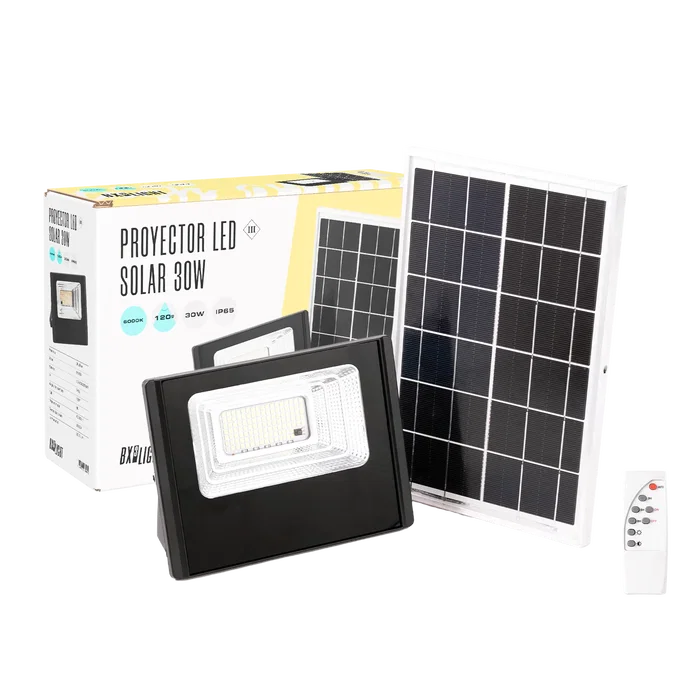 El Proyector LED Solar con Control Remoto BX3 LIGHT es una solución de iluminación exterior autónoma diseñada para ofrecer alto rendimiento lumínico sin necesidad de conexión a red eléctrica.Equipado con panel solar y batería integrada, permite funcionamiento automático y control total mediante mando a distancia.Especificaciones técnicas: Tecnología LED: Alta eficiencia Alimentación: Panel solar integrado Control: Mando a distancia incluido Encendido automático: Sensor crepuscular Grado de protección: IP65 (resistente al polvo y chorros de agua) Batería recargable integrada Larga vida útil operativa Características principales: Funcionamiento 100% autónomo Control remoto de encendido, apagado y modos de iluminación Programación de temporizador (según modelo) Fácil instalación sin cableado Alta resistencia a condiciones climáticas adversas Ideal para jardines, fachadas, parkings, fincas y zonas sin acceso eléctrico Fabricado bajo los estándares de calidad de BX3 LIGHT, garantiza eficiencia energética, fiabilidad y comodidad de uso en proyectos de iluminación exterior solar.
