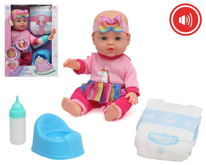 C/v bebe muñeca linda ropa accesorios colores 30x22cms sonido 1 set
