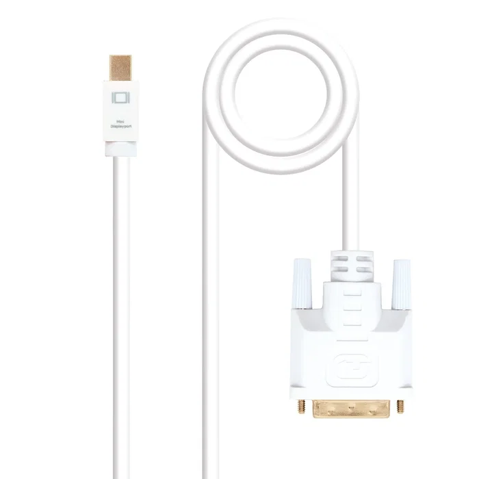 Nanocable 10.15.4202 Cable Adaptador Mini DisplayPort a DVI Macho 2m Blanco - 1080p @ 60Hz, Full HD, Contactos Bañados en Oro