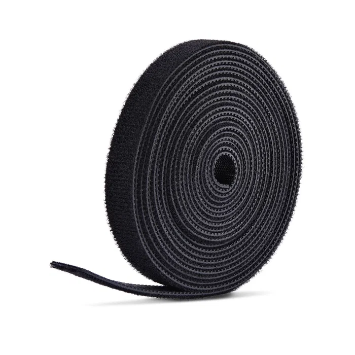 - Bridas para Cables de Longitud Personalizada: Esta bobina a granel de cinta adhesiva negra reutilizable con gancho y bucle, le permite cortar y ajustar las bridas para cables a la longitud que necesite sin desperdicio de las bridas tradicionales