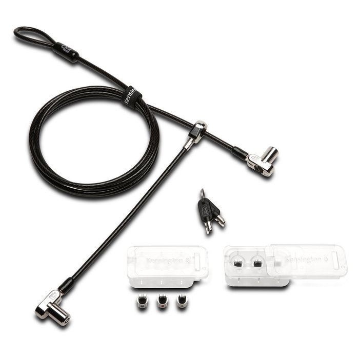 Kensington Notebookschloss 3en1 Twin Head - Candado con cable universal de seguridad para portátil, acero al carbono, llave incluida