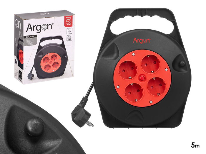 Argon Cable Enrollable 5 Metros Eléctrico 4 Enchufes 2300W Negro/Rojo 25.2x24x9 cm (Set de 6)
