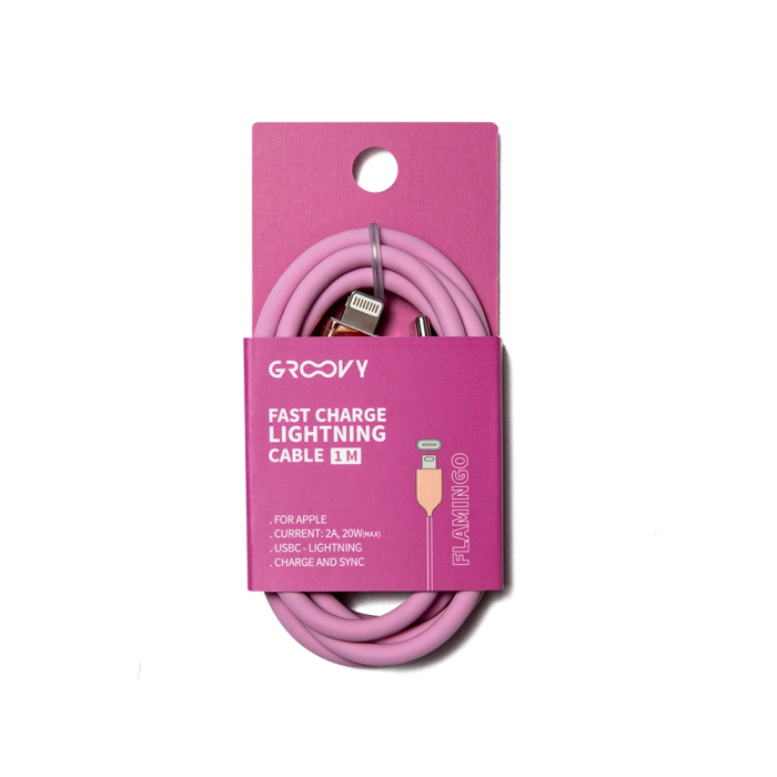 Groovy Cable USB 2.0 Tipo C a Tipo C Carga Rápida 1mt Silicona Rosa Flamenco