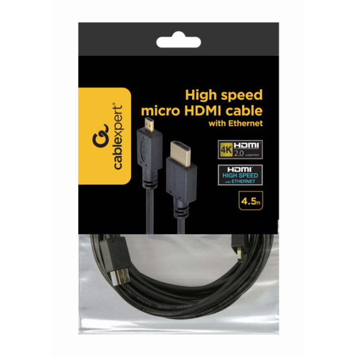 GEMBIRD Cable HDMI a Micro HDMI 4.5m Negro, HDMI Tipo A a Tipo D, Alta Velocidad con Ethernet, Soporta 4K UHD y 3D