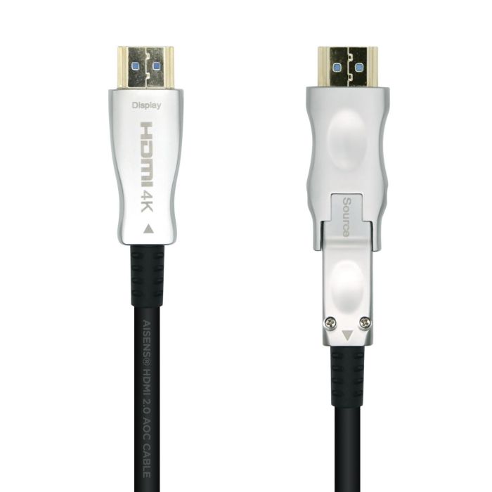 El cable HDMI Aisens A148-0510 es un cable HDMI diseñado para transmitir señales de vídeo y audio con alta calidad y fiabilidad, especialmente indicado para conexiones que requieren un rendimiento avanzado como reproducir contenido 4K en resolución ultra alta. Este modelo cuenta con tecnología HDMI 2.0, que permite una mayor velocidad de transferencia y soporte para formatos de vídeo HDR, ofreciendo imágenes más nítidas y colores más vivos en pantallas compatibles. Posee conectores macho HDMI en ambos extremos, lo que facilita su conexión directa a dispositivos como televisores, monitores, consolas de videojuegos, reproductores multimedia o tarjetas gráficas de ordenador. Su longitud de 15 metros brinda gran versatilidad para instalaciones donde la distancia entre los equipos es considerable, sin perder estabilidad en la señal transmitida. El cable está construido con revestimiento de PVC negro y un diseño plano, que contribuye a una mejor organización y evita enredos, además de ofrecer resistencia ante el desgaste y flexiones constantes. Su estructura AOC (Active Optical Cable) desmontable asegura una transmisión de datos mediante fibra óptica, lo que minimiza las interferencias electromagnéticas, mantiene la integridad de la señal a largas distancias y reduce la atenuación común en cables convencionales de cobre. En conjunto, el cable HDMI Aisens A148-0510 es una solución técnica sólida y profesional para instalaciones audiovisuales que demandan estabilidad, alta definición y flexibilidad en la gestión del espacio, asegurando compatibilidad con equipos modernos y exigentes. Esta propuesta de Aisens cubre las necesidades tanto del usuario residencial como del profesional que precisa calidad y confiabilidad en sus conexiones HDMI.