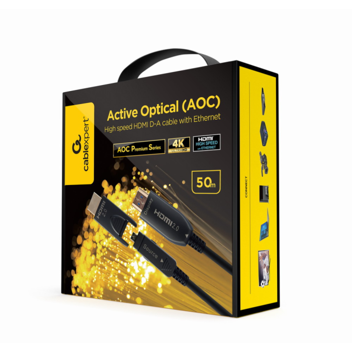 GEMBIRD Cable HDMI AOC Premium CCBP-HDMID-AOC-50M 50m, Micro HDMI Tipo D a HDMI Tipo A, Negro, 4K UHD 60Hz, Fibra Óptica, Trenzado Nylon
