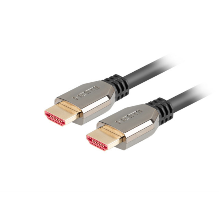 Lanberg Cable HDMI CA-HDMI-30CU-0010-BK V2.1 48Gbit/s 4K@240Hz 8K HDR, 1 metro, Conectores Macho Chapados en Oro, Negro/Plata