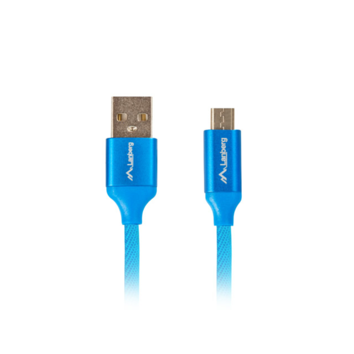 Lanberg Cable USB 2.0 Macho Micro a Macho USB Tipo A, Trenzado Tela Azul, 1.8m
