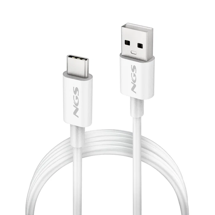 NGS ZYRO-AC Cable USB-A a USB-C 2.0, 1m Blanco, Carga Rápida hasta 15W, Datos 480Mbps, Compatible Smartphones, Portátiles, Tabletas