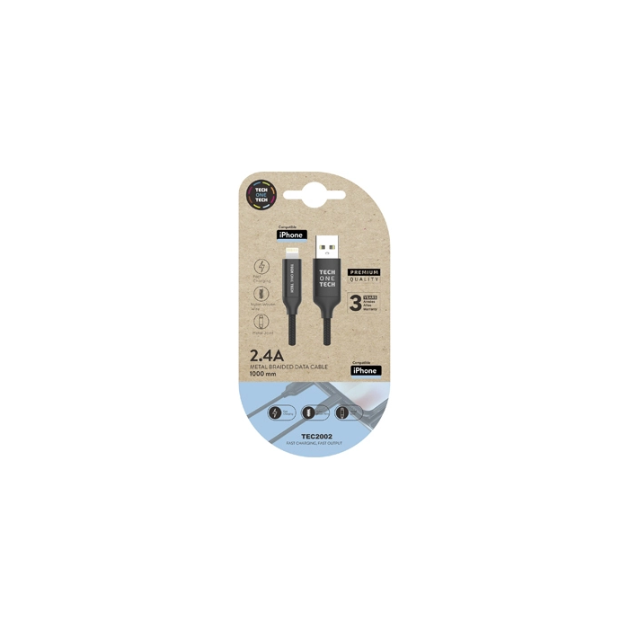 Cable Tech-One-Tech Usb-Lightning Alto Rendimiento 2,4A Negro 1 M.
