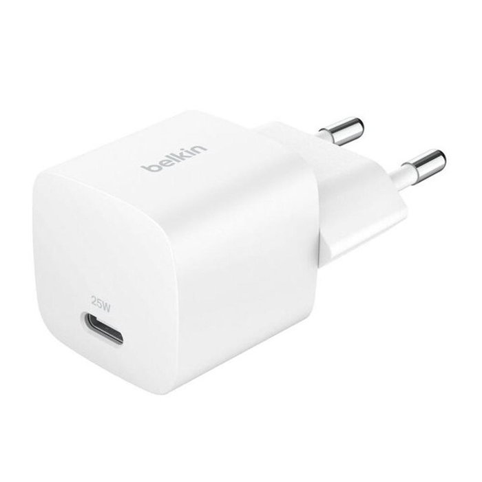 El Belkin BoostCharge WCA012KQWH es un cargador compacto y eficiente, ideal para quienes necesitan cargar sus dispositivos USB-C de forma segura, rápida y en cualquier lugar. Diseñado para usuarios de smartphones, tabletas o consolas portátiles, este adaptador de pared ofrece una potencia de hasta 25 W con tecnología Power Delivery 3.1, permitiendo una carga optimizada para dispositivos de Apple, Samsung, Google y otros compatibles.