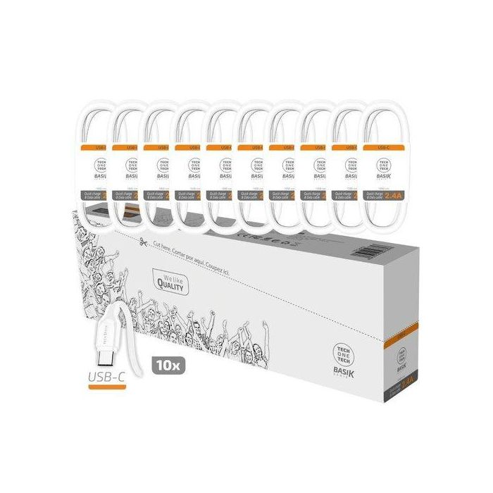 Cable Tech-One-Tech Basik Usb-Usb-C Blanco 1 M. Pack De 10