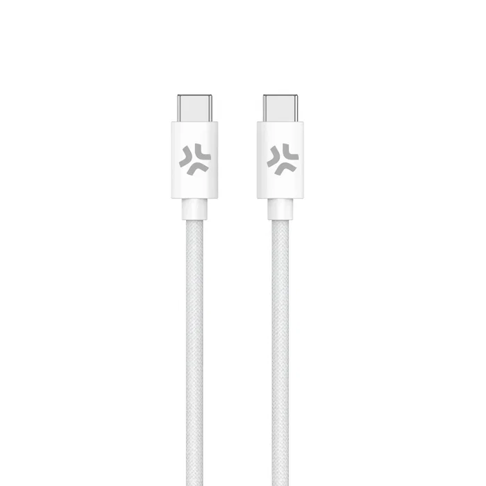 Celly Cable USB-C a USB-C 1.5 Metros, Tejido de Algodón Blanco, Carga Rápida 60W, Compatible con iPhone 15 y Smartphones Android