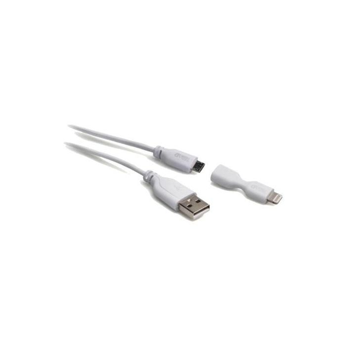 CABLE USB MACHO-MICRO USB MACHO GEBL PLUSBCHLMW - INCLUYE ADAPTADOR MICRO USB A LIGHTNING - CARGA Y SINCRONIZACION - 1 METRO - BLANCO