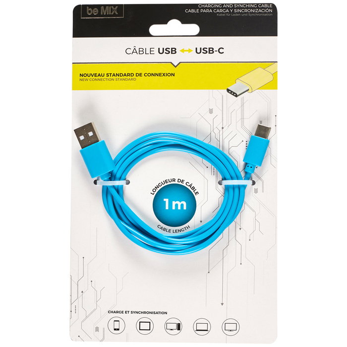 Be Mix Cable USB Tipo C High Tech 1 Metro Lila Fucsia Azul Negro