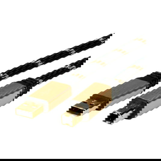ROLINE 11.02.8803, 3 m, USB A, USB B, USB 2.0, Macho/Macho, Negro, Oro