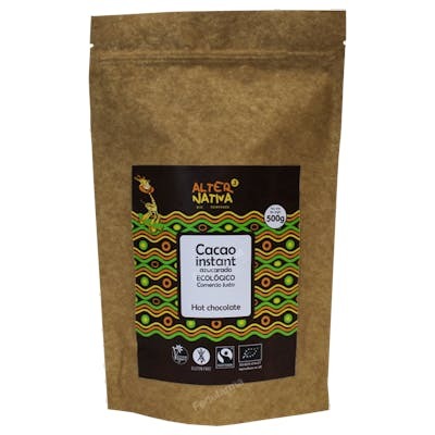 Indicaciones: Cacao de COMERCIO JUSTO, cultivado por cooperativas de campesinas y campesinos respetando los Derechos Humanos, el Medioambiente y la Justicia Social. Cacao de AGRICULTURA ECOLÓGICA, cultivado y elaborado sin abonos ni pesticidas químicos. Adecuado para personas vegetarianas y veganas. No contiene colorantes ni conservantes. De disolución inmediata tanto en leche fría como caliente. Sin lactosa ni gluten.