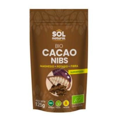 SOLNATURAL Cacao Nibs 125Gr Bio Alimento Vegano Sin Gluten Rico en Magnesio Potasio y Fibra