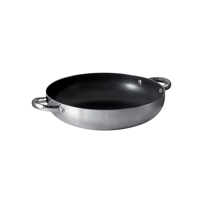 - Aluminio con interior antiadherente y asas en acero inoxidable.