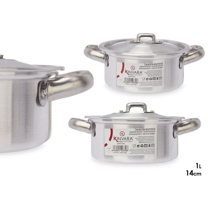 Ver todas las marcasKinvara Cacerola de Aluminio 1 L, 14 cm Diámetro, Apta para Gas y Horno, Plata (Set de 10)
