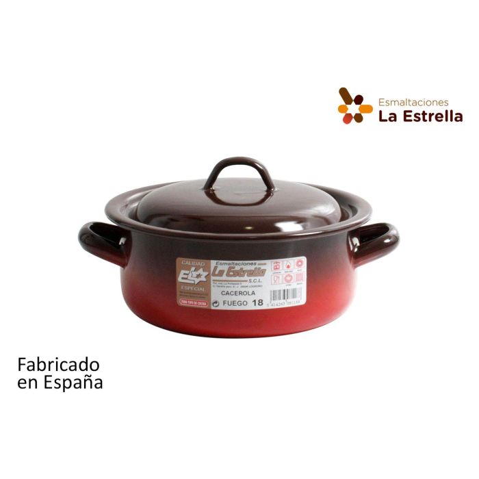 La Estrella Cacerola Esmaltada con Tapa 18 cm - 1.8L Fuego (6 Unidades)