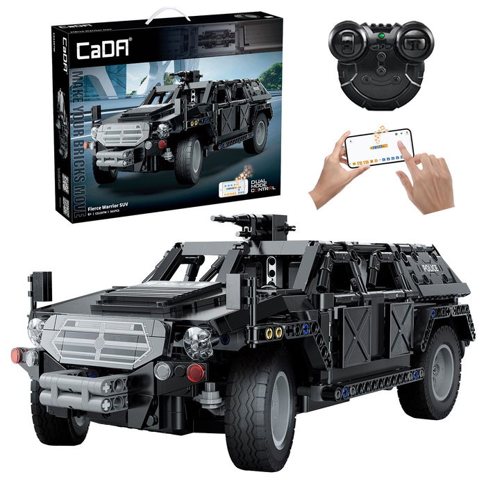 CaDA SWAT Truck por CaDA se basa en un coche de policía especial, con un cuerpo áspero y una relación de 1:12.. Scratch juego de programación gráfica y APP de control de múltiples juegos: operación de interfaz de control remoto, operación de interfaz de giroscopio, la operación de interfaz de planificación de ruta Función de control remoto: 2,4 GHz de control remoto para avanzar, y retroceder en movimiento y, izquierda y derecha de giro. Diseño de liberación rápida: Menos ladrillos para el jugador de entrada. La fuerte estructura de colisión garantiza más diversión en las carreras interactivas de varios vehículos sin problemas de caída de ladrillos. Adecuado para niños mayores de 6 años y entusiastas de los coches Nota: Requisitos de instalación de la aplicación: iOS requiere la versión 12.0 y superior, mientras que Android requiere la versión 8.0 y superior.