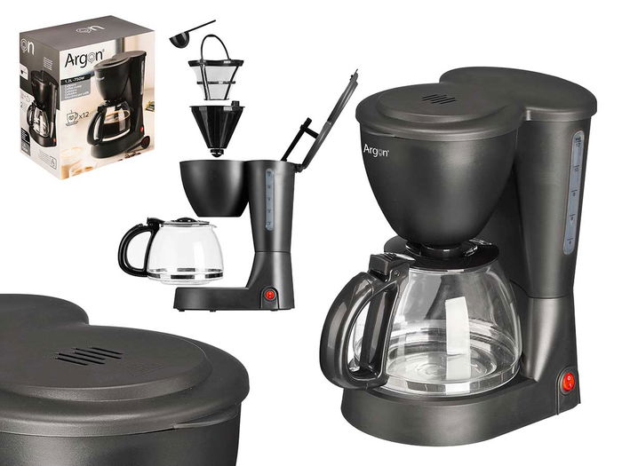 Argon Cafetera Vaso Filtro 12 Tazas 750W 1.2L Negro y Transparente 16x29x23cm (Set de 6)