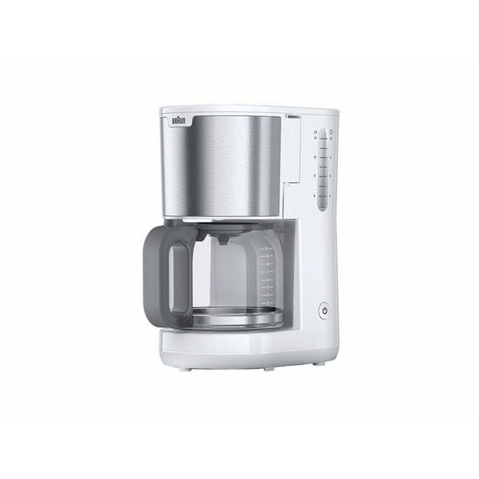 La KF1500WH de Braun es una cafetera de goteo diseñada para quienes valoran la sencillez y la capacidad en la preparación de café diario. Presenta un elegante acabado en color blanco que se adapta fácilmente a todo tipo de cocinas, destacando por su diseño funcional y moderno. Este modelo ofrece una amplia capacidad de entre 10 y 15 tazas, ideal tanto para hogares con varios miembros como para pequeñas oficinas, permitiendo preparar grandes cantidades de café de una sola vez. Integra un sistema de apagado automático que proporciona una mayor seguridad y eficiencia energética, ya que la cafetera se desconecta sola tras finalizar el ciclo, evitando consumos innecesarios. Cuenta con una potencia de 1000 W, lo que garantiza un calentamiento rápido y eficiente del agua, logrando un café de sabor intenso en cada preparación. Funciona conectada a la red eléctrica y utiliza filtro de café convencional, contribuyendo a una experiencia de uso sencilla y práctica, donde el mantenimiento y la limpieza resultan mínimos. El sistema de goteo asegura una extracción homogénea, conservando el aroma del café sin necesidad de complicaciones adicionales o funciones superfluas. Esta cafetera es una solución fiable y cómoda para quienes buscan calidad y capacidad en el día a día, posicionándose como una opción versátil dentro del segmento de cafeteras familiares y de oficina.