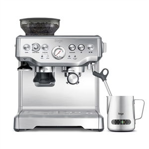Crea un espresso de gran sabor en menos de un minuto, desde el grano hasta la taza. The Barista Express te permite moler los granos justo antes de la extracción, y sus filtros intercambiables y la opción de funcionamiento automático o manual garantizan resultados de nivel profesional en un instante. El molinillo cónico de muela integrado te proporciona la cantidad exacta de café recién molido directamente en el portafiltros para obtener tu sabor preferido con cualquier tipo de café. El control de temperatura digital (PID) suministra agua a la temperatura exacta requerida para una extracción óptima del espresso. El vaporizador te permite obtener leche microespumada para realzar el sabor de tu café y crear tu propio latte art. Simple e intuitivo, te da control sobre el tamaño de molienda sin importar el tipo de grano que uses. Su innovador soporte para el molinillo permite a cualquier barista aficionado moler directamente en el portafiltros para espresso.