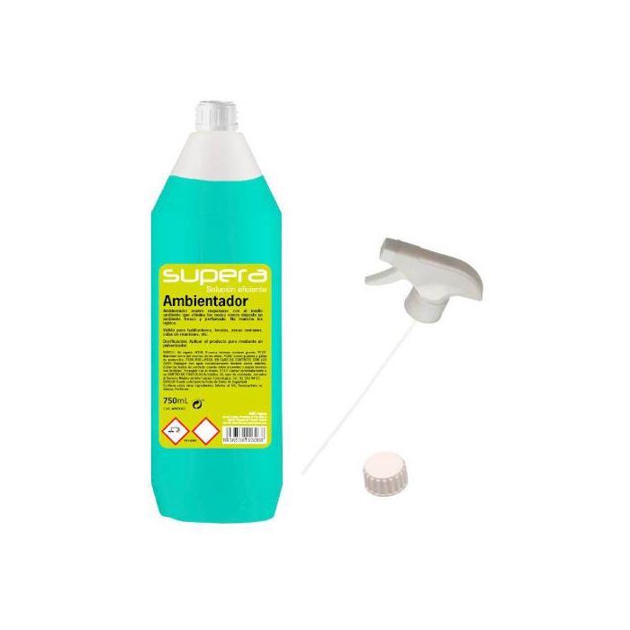 Supera Ambientador AM073 - Caja 20 uds. 750ml Botella, PH Neutro, Olor Floral-Frutal, Azul/Verde