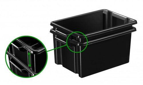 Caja Almacenamiento Sostenible Cep Hw048R 48,5 Litros Apilable Sin Tapa Con 2 Asas (Medidas Interiores: 480X330X280 Mm) Negro