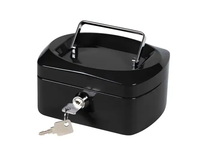 Estructura de acero de 0,8 mm de espesor. Incluye 2 juegos de llaves. Con clasificador para monedas. Bandeja extraíble con hueco para billetes. (6 ). Medidas: 152 x 80 x 115 mm.