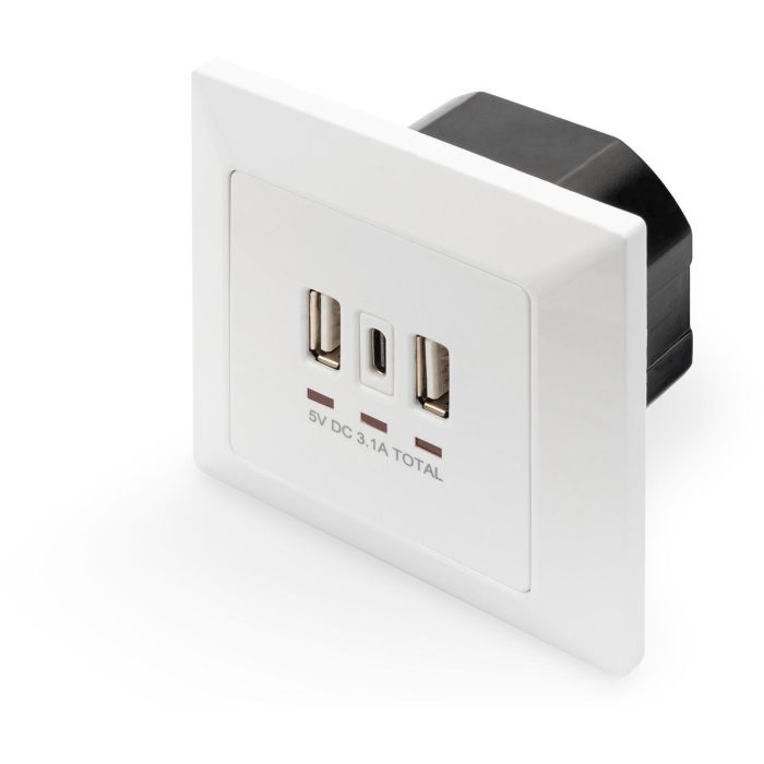 Digitus Caja de Carga para Empotrar con 2 USB A y 1 USB Type-C, Blanco