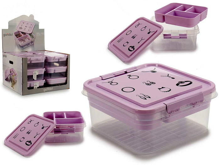 Gondol Caja de Joyas Plástico Transparente y Morado con Cierre 24.5 x 11.5 x 26 cm (Set de 12)