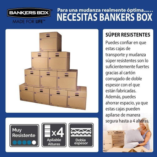 Caja de Mudanza Montaje Manual L 500X300X300. Cartón Doble Bankers Box 6208201 10 unidades