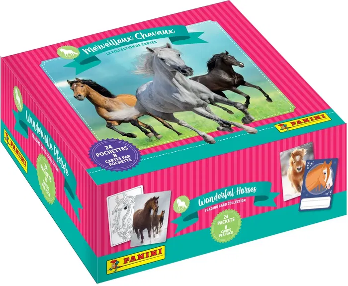 Caja de pegatinas - PANINI - Colección de cartas para aficionados a los caballos - Contiene 24 bolsillos de 8 cartas