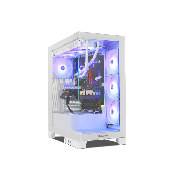 Nox Hummer Glock es una semitorre triple A con un impactante diseño que ofrece una vista lateral panorámica a su interior conformada por su panel lateral y frontal frameless de cristal templado. Compatible con gráficas de gran tamaño, de hasta 410 mm, este chasis cautivará todos tus sentidos. Esta caja Nox ha sido diseñada para elevar tu setup al siguiente nivel.