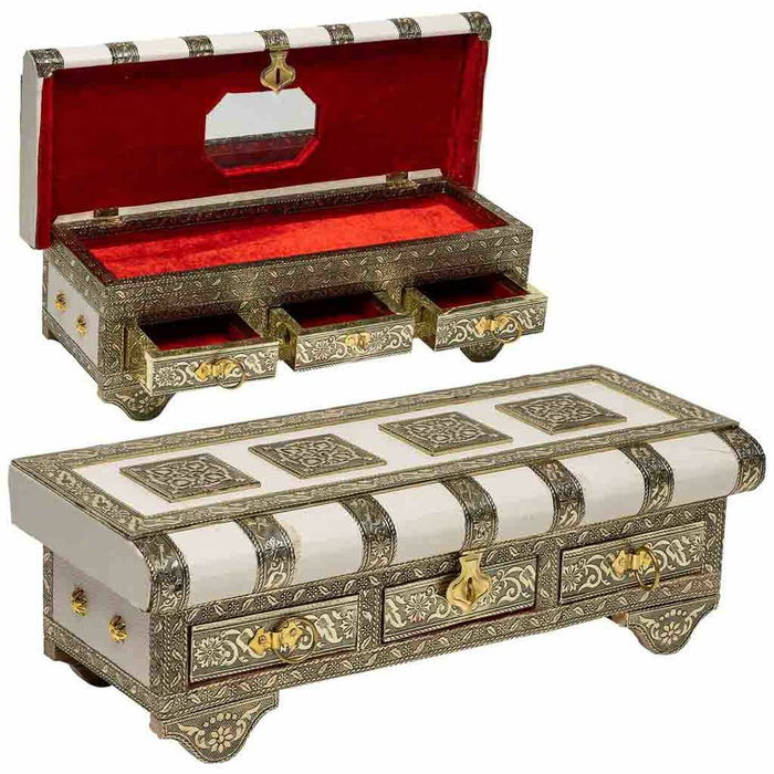 Caja-Joyero Alexandra House Living Blanco Aluminio Madera MDF 13 x 12 x 38 cm