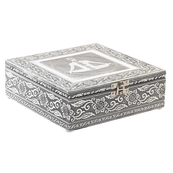 Caja-Joyero DKD Home Decor Plateado Madera Aluminio Verde 18 x 18 x 6 cm