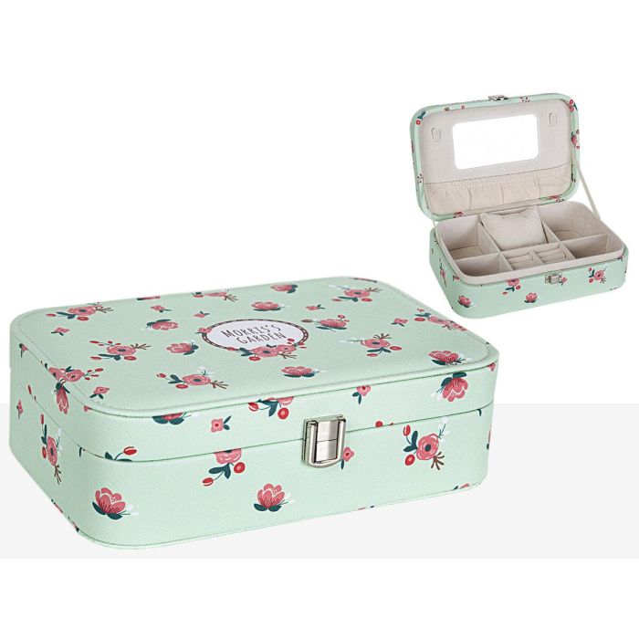 Caja-Joyero Romimex Verde PVC 22 x 7 x 15 cm Flores