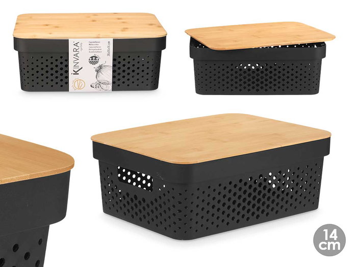CAJA MULTIUSOS PERFORADA TAPA BAMBU MDN NEGRA 14CM