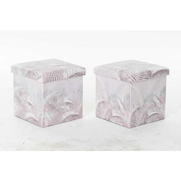 DKD Home Decor Caja Plegable Tropical de Almacenamiento Gris de PU 34x34x34 cm, Juego de 2 Unidades, Colección Bestone