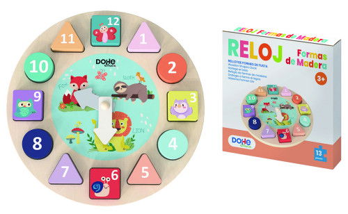 JUEGO EDUCATIVO DE DIFERENTES FORMAS GEOMÉTRICAS DE MADERA NATURAL, CON BORDES REDONDOS, SUAVE TACTO Y CON LLAMATIVOS COLORES, CON MOTIVO DE RELOJ. IDEAL PARA EJERCITAR LA COORDINACIÓN ENTRE OJO-MANO, ALENTANDO LA IMAGINACIÓN Y LA ESTIMULACIÓN VISUAL. ACTIVA LA HABILIDAD MANUAL PARA ENCAJAR Y CLASIFICAR SEGÚN LA FORMA EN SU LUGAR, IMPULSANDO EL APRENDIZAJE Y FOMENTANDO A LA VEZ EL RAZONAMIENTO. Y SOBRE TODO APRENDER JUGANDO Y DIVIRTIÉNDOSE.