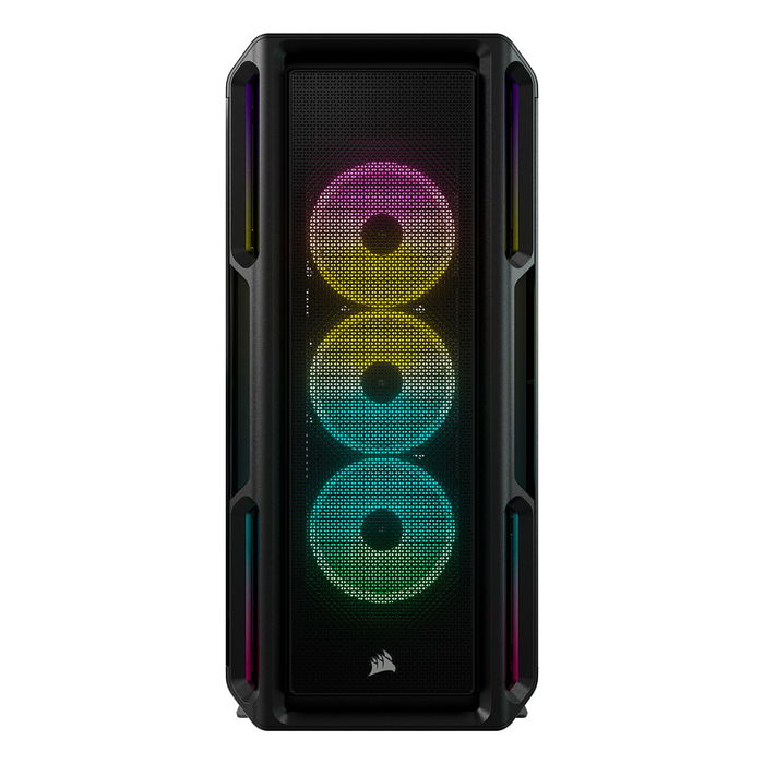 Corsair iCUE 5000T RGB - Torre Media ATX, Color Negro, Ventiladores ARGB Incluidos (3x 120 mm), 4 Bahías 2.5", Soporte para Tarjetas Gráficas de 40 cm, Panel de Vidrio Templado